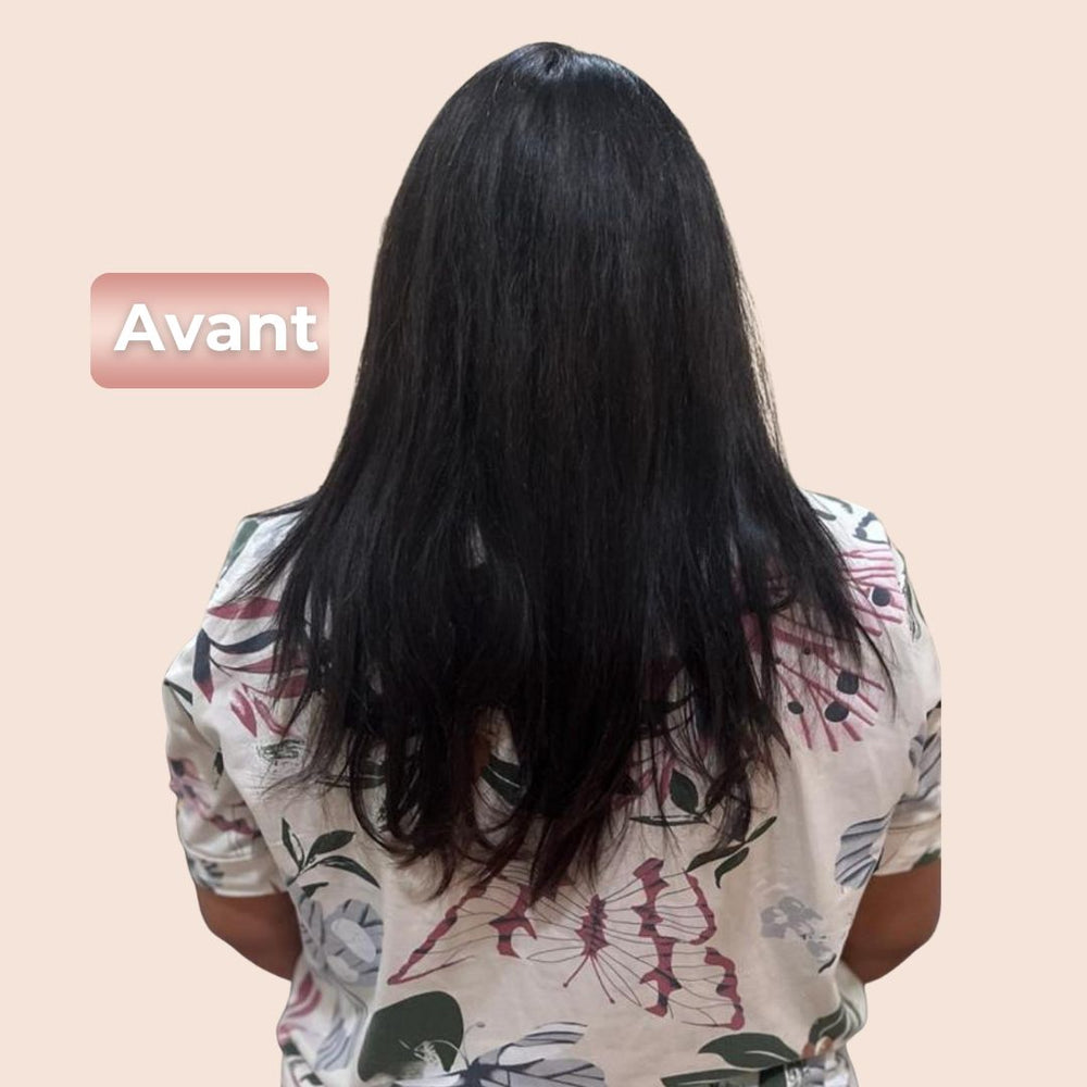 - À 2 mois : longueur visible, densité, boucles mieux définies, pointes assouplies (~+6 cm).